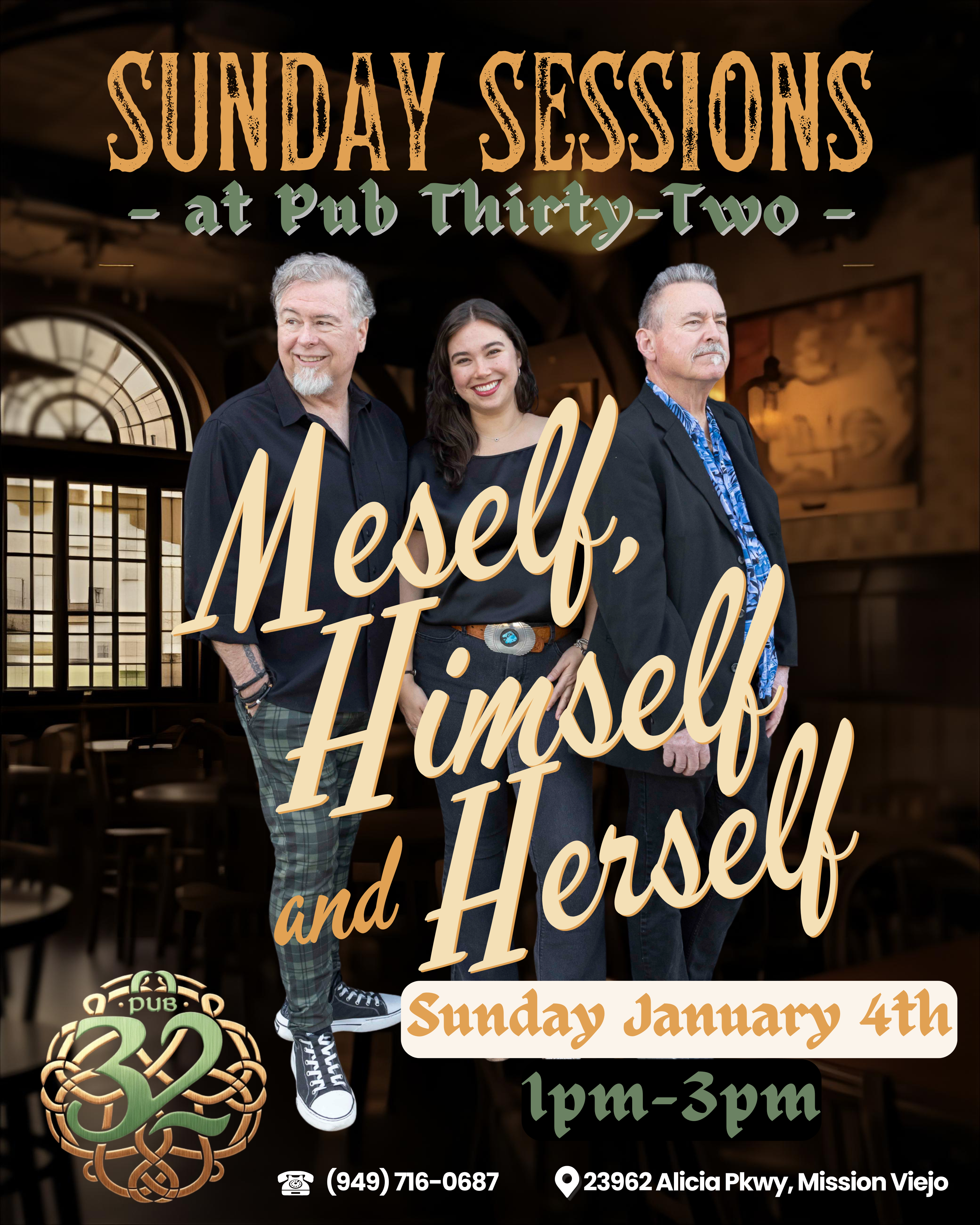 Get ready to kick off 2026 with a vibrant celebration of traditional Irish tunes at Pub Thirty-Two! Join us on Sunday, January 4th, from 1 PM to 3 PM for an unforgettable Sunday Session featuring the beloved Irish music trio, Meself, Himself & Herself.